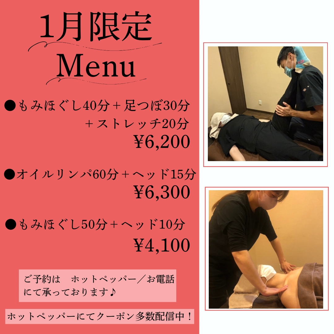 冷えが気になりお身体が硬直する時期です。年末年始のお疲れに是非、当店をご利用くださいませ♪